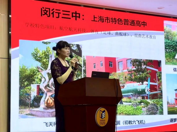 8月12日下午,研修班成员走进闵行三中,沉浸式体验该校独具特色的航空航天教育。副校长俞露以“携手共进 共促发展”为主题主持区域教育教学交流活动,生动展现了“行有规,思无疆”的校训如何赋能学生成长——在严谨的科技实践中培育求真精神,在开放的探索中激发向善品格与臻美追求。